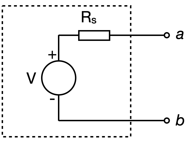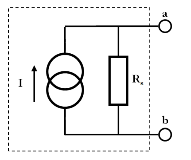 When there is no load between a and b, the full current \(I\) will pass through the internal resistance \(R_{\rm s}\).