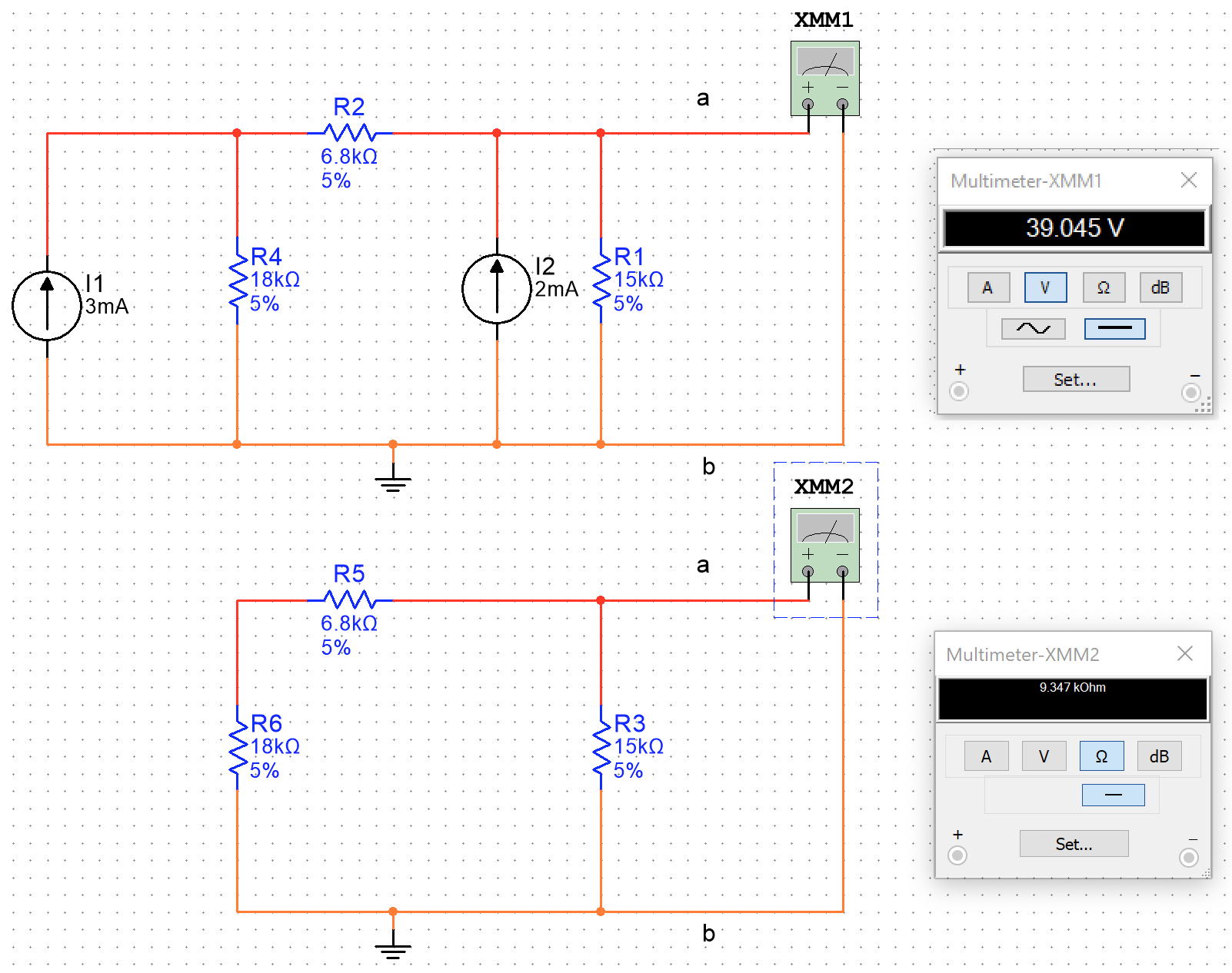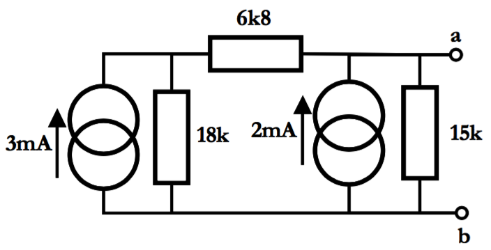 A second analysis technique to simplify circuits is Norton’s theorem. This theorem results in replacing any circuit for an ideal current source \(I\) in parallel with a resistor \(R\). In this course we will limit ourselves to Thévenin’s theorem.