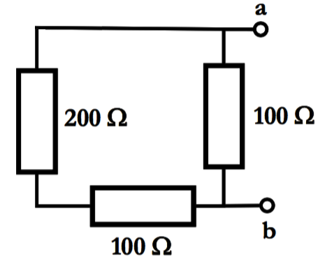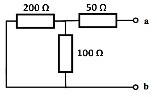 \(R_{\rm Th}\) is the resistance between terminals \(a\) and \(b\) and is given by: