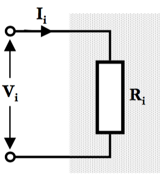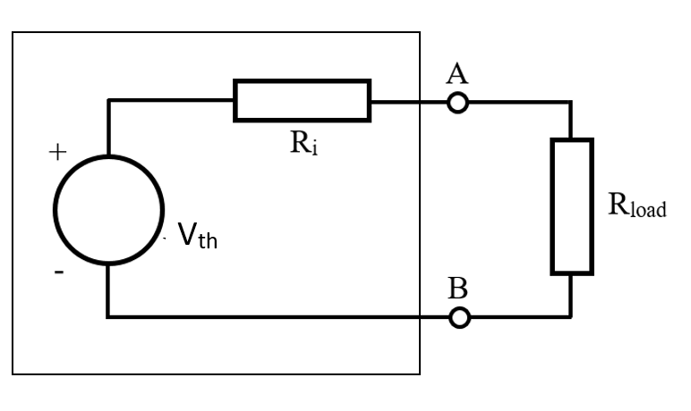 Any circuit with two terminals composed of resistors, voltage and/or current sources can be replaced by an ideal voltage source \(V\) and a resistor \(R\) in series.