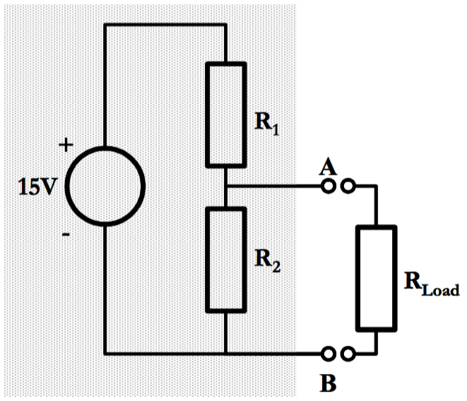 So far \(V_{\rm Th}\) and \(R_{\rm Th}\) have been determined by calculation, which is an option when the circuit is known in detail. When this is not the case and the circuit has to be treated as a ‘black box’ with two terminal, the \(V_{\rm Th}\) and \(R_{\rm Th}\) can be determined experimentally.